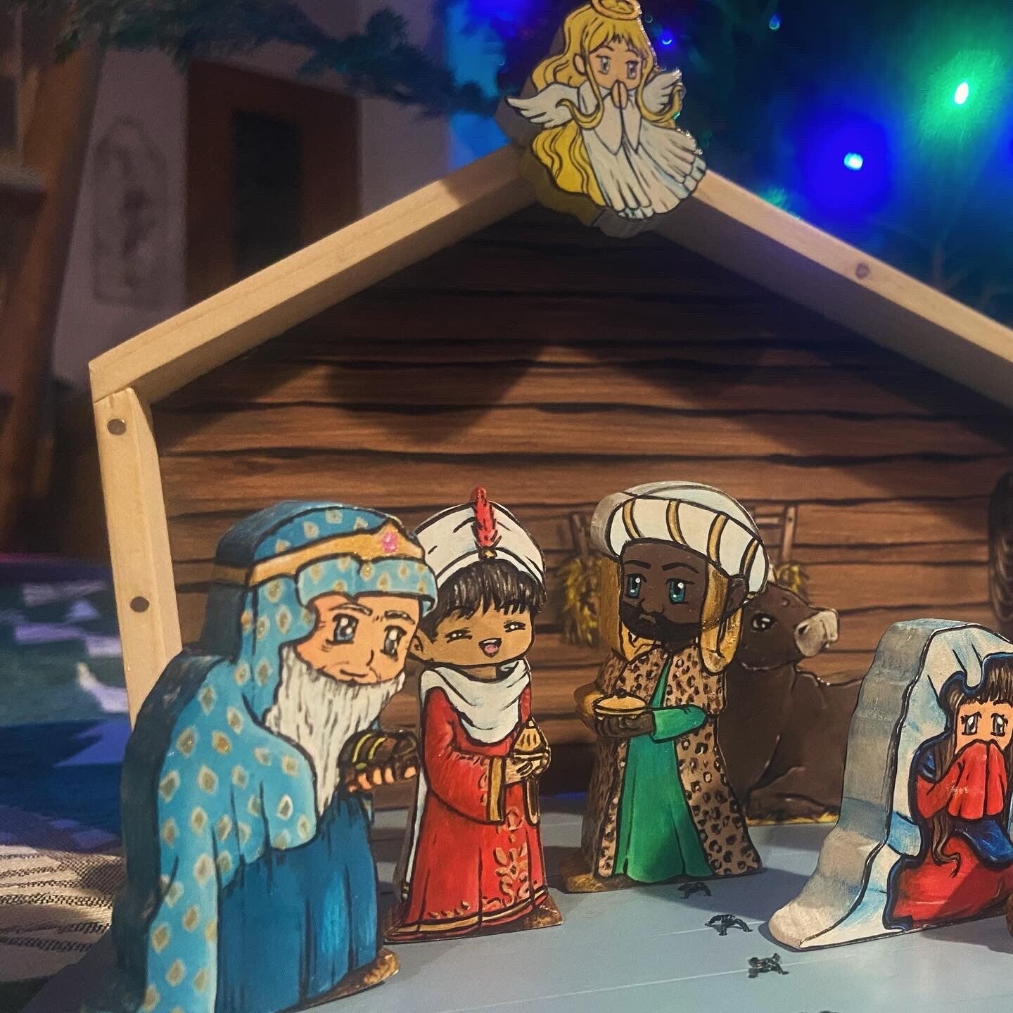 Pesonnages en bois avec aimant pour les positionner sur le sol de la crèche